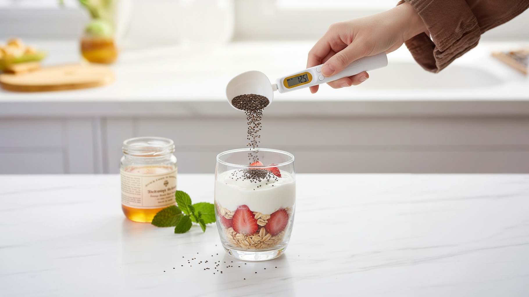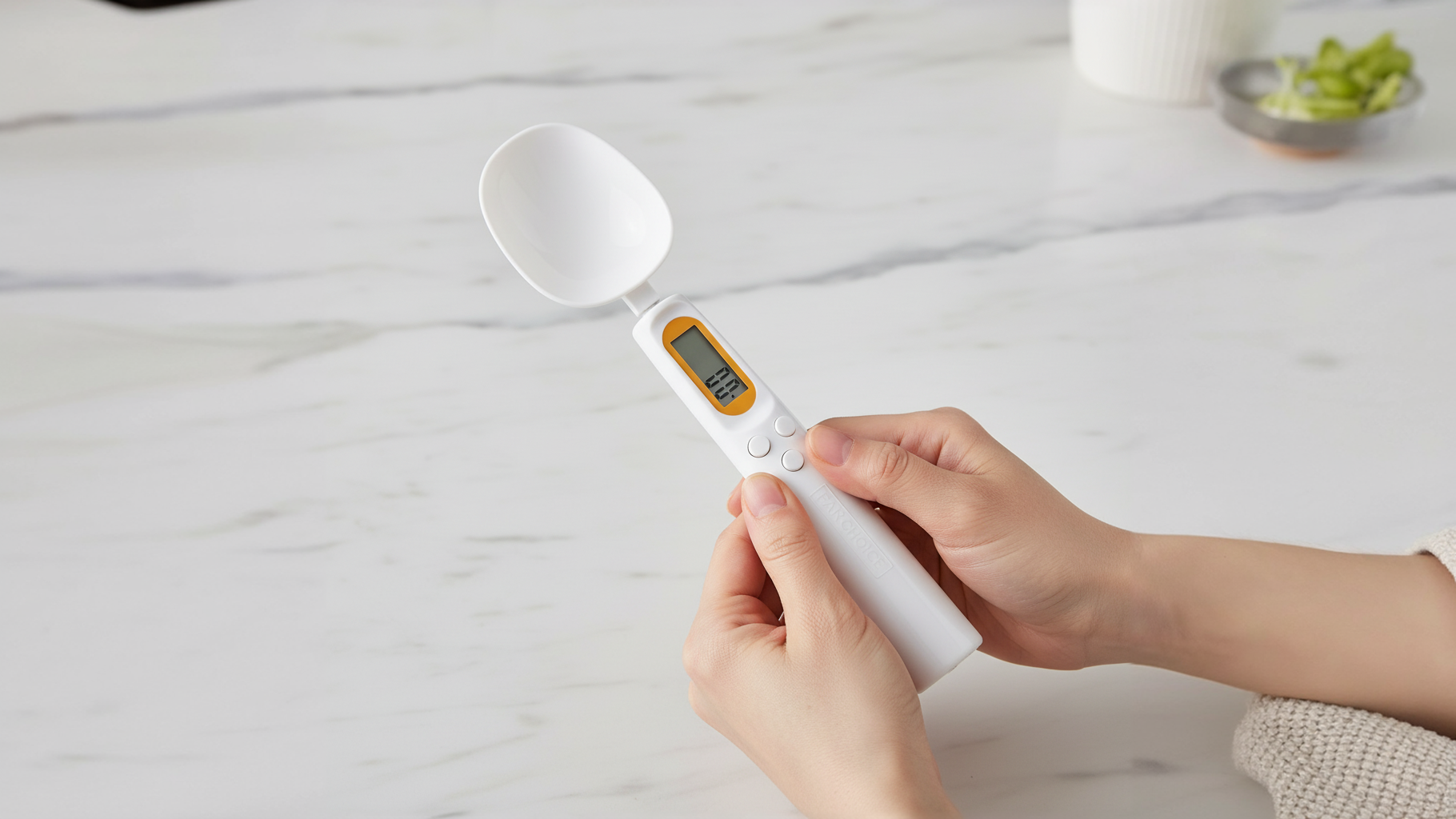 Ein kleiner Fehler bei der Menge, und schon stimmt der Geschmack nicht mehr. Der Skalia-Löffel löst dieses Problem: Er wiegt Zutaten direkt beim Portionieren grammgenau ab, ohne Schätzen, ohne Aufwand.