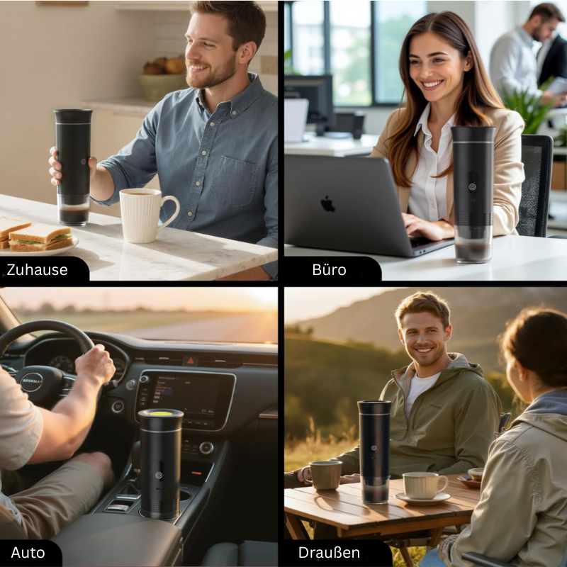 Ob im Büro, auf Reisen, beim Camping oder im Auto: Die kompakte Bauweise und der leistungsstarke Akku ermöglichen maximale Flexibilität. Frisch gemahlener Kaffee oder Kapseln werden zuverlässig extrahiert und sorgen für konstante Qualität bei jeder Tasse.