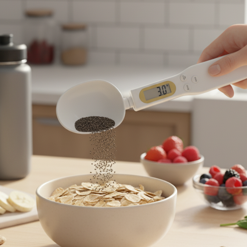 Der digitale Messlöffel von Skalia wurde für exaktes Dosieren und höchste Ansprüche in Küche und Alltag entwickelt. Die integrierte Präzisionssensorik ermöglicht punktgenaue Messungen kleinster Mengen und sorgt für maximale Kontrolle bei jeder Zutat – von feinen Gewürzen bis zu Kaffee, Tee oder Backzutaten.